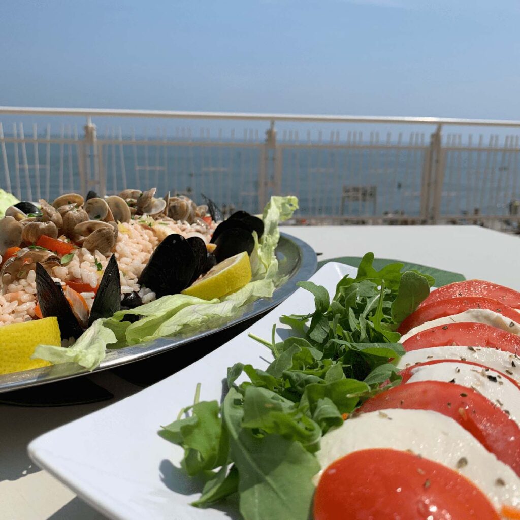 Goditi un aperitivo sulla nostra terrazza con vista panoramica sul litorale Adriatico!